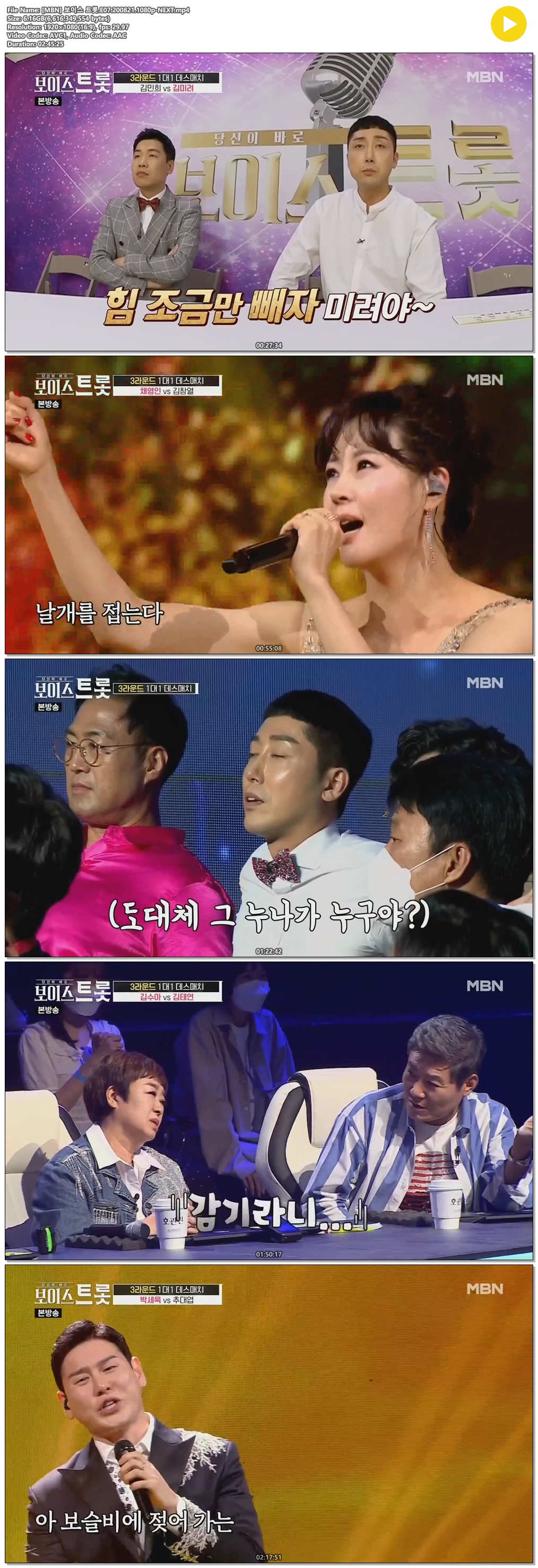 • [MBN] 보이스 트롯.E07.200821.1080p-NEXT.mp4 (6.2G) 다운로드 : 19,483