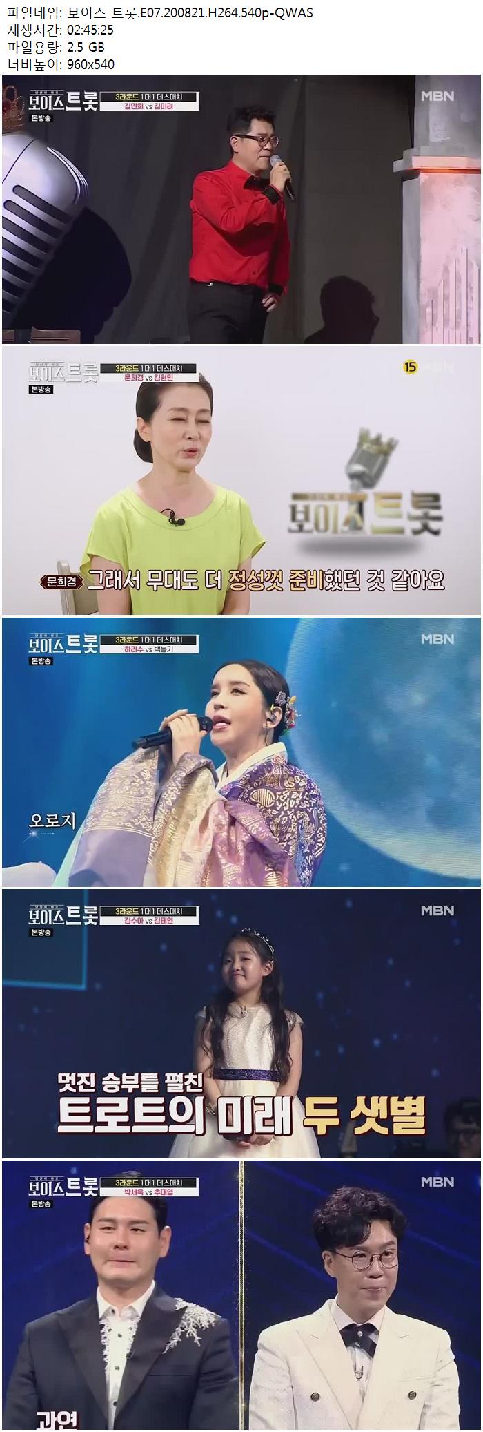 - 보이스 트롯.E07.200821.H264.540p-QWAS.mp4 (2.5G) 다운로드 : 19,592