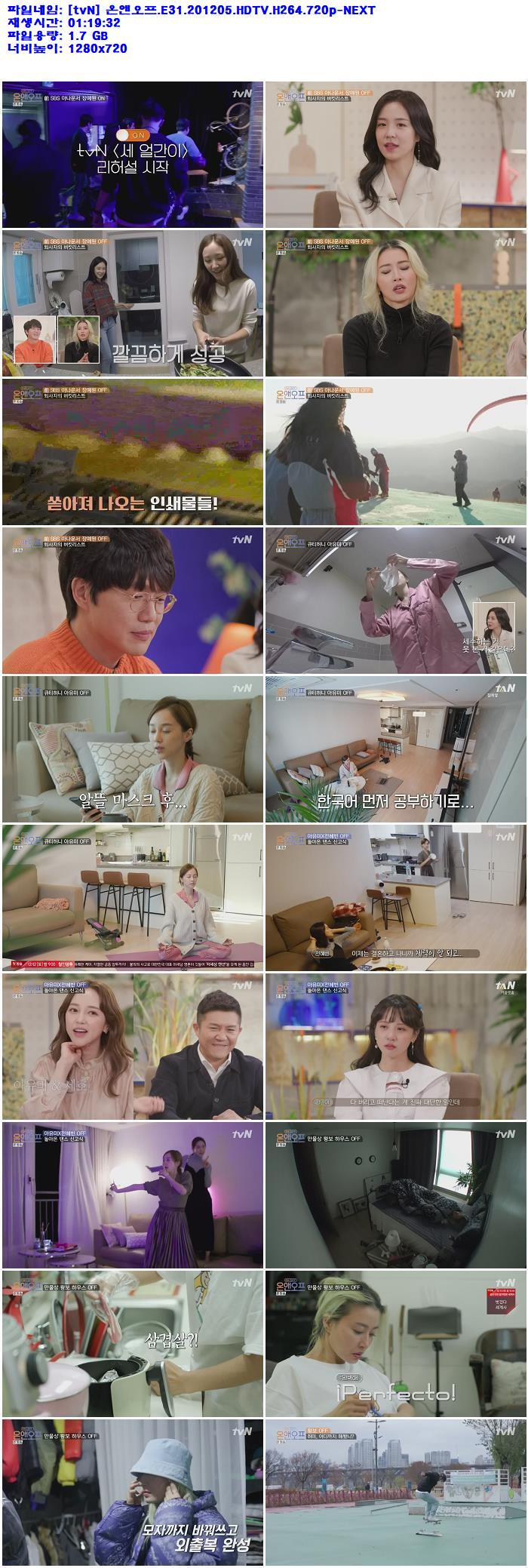 - [tvN] 온앤오프.E31.201205.HDTV.H264.720p-NEXT.mp4 (1.7G) 다운로드 : 31,064