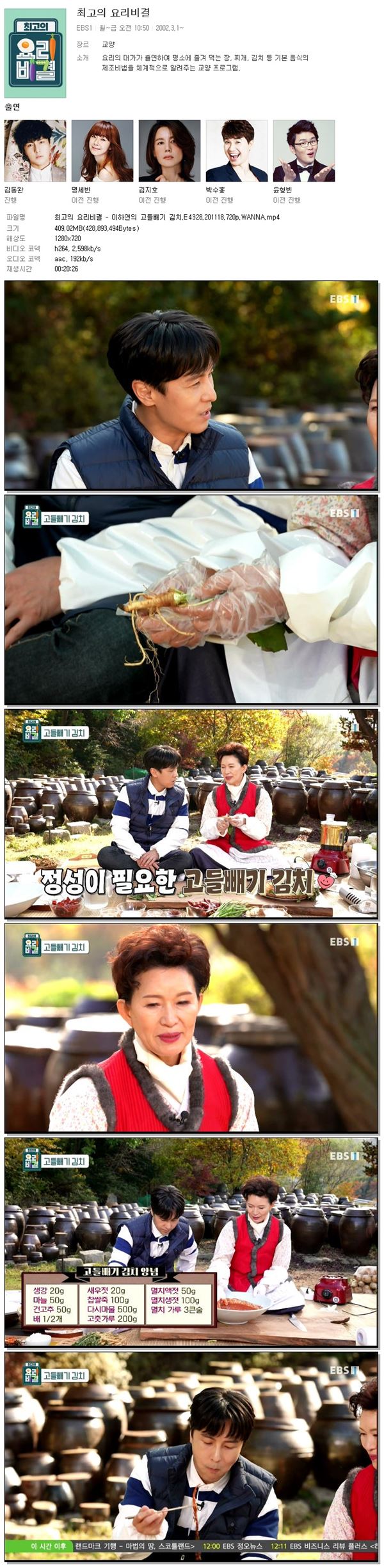 최고의 요리비결 – 이하연의 고들빼기 김치.E4328.201118.720p 최고의 요리비결 - 이하연의 고들빼기 김치.E4328.2011… (409.0M) 다운로드 : 31,313 최고의 요리비결 - 이하연의 고들빼기 김치.E4328.torrent (409.0M) 다운로드 : 30,944 최고의 요리비결 - 이하연의 고들빼기 김치.E4328.2011… (409.0M) 다운로드 : 31,313 최고의 요리비결 - 이하연의 고들빼기 김치.E4328.torrent (409.0M) 다운로드 : 30,944