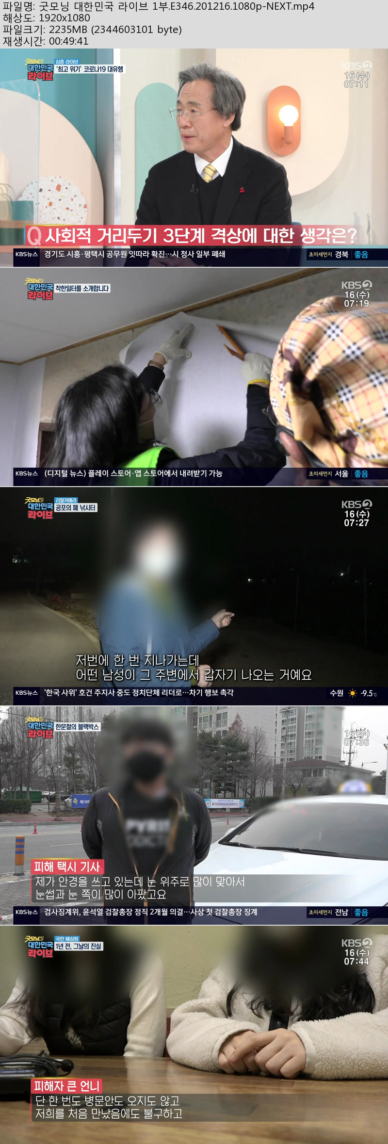 • 굿모닝 대한민국 라이브 1부.E346.201216.1080p-NEXT.m… (2.2G) 다운로드 : 32,162