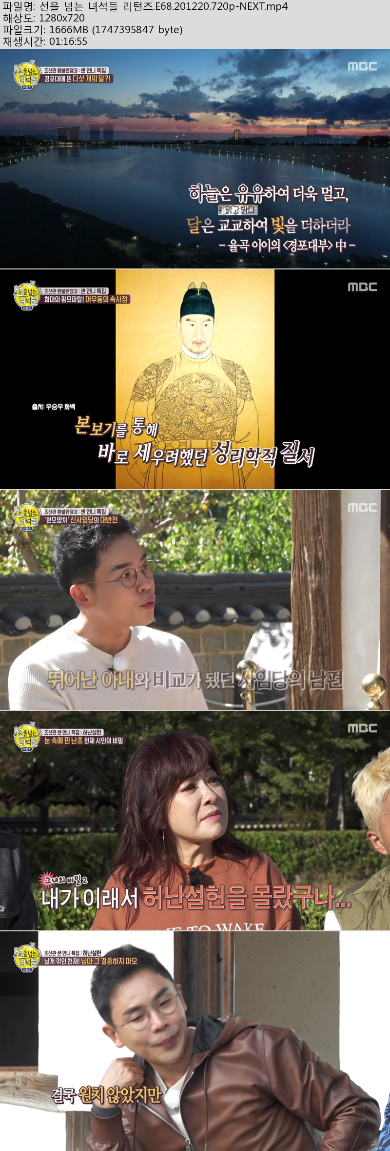 • 선을 넘는 녀석들 리턴즈.E68.201220.720p-NEXT.mp4 (1.6G) 다운로드 : 32,610