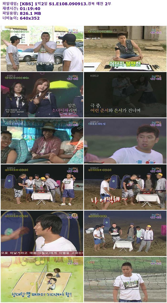 • [KBS] 1박2일 S1.E108.090913.경북 예천 2부.torrent (826.1M) 다운로드 : 33,600