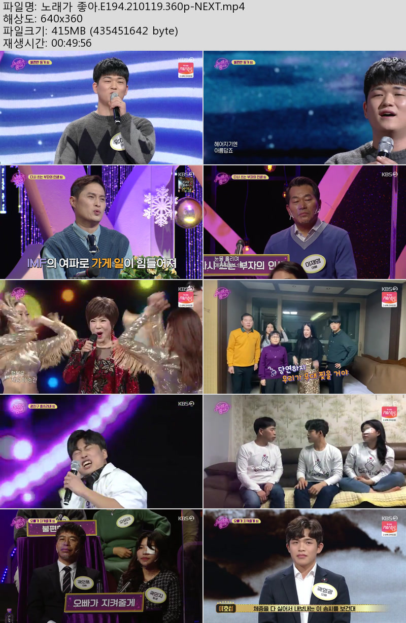 - 노래가 좋아.E194.210119.360p-NEXT.mp4 (415.3M) 다운로드 : 35,443