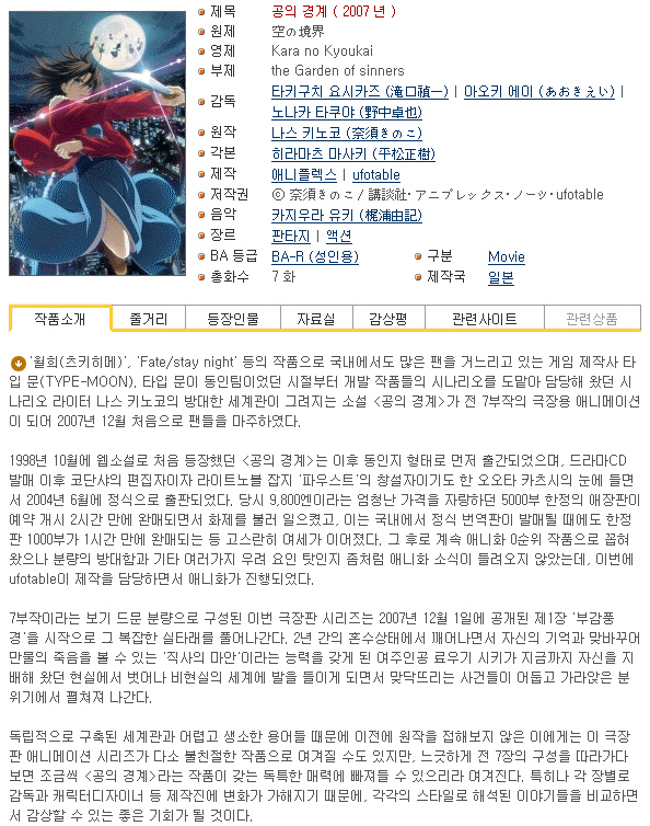 애니메이션 인생 공의 경계 [인생] 공의 경계 01-08완결 [극장판 포함] -스릴러 능력 액션 환타지- 멋진인생 2026-01-01 3,166 43.5G 다운로드 5개 파일 Kara no Kyoukai - 01 [BDRip 1920x1080 x264 FLAC].mkv 43.5G 다운 Kara no Kyoukai - 01 [BDRip 1920x1080 x264 FLAC].smi 다운 Kara no Kyoukai - 02 [BDRip 1920x1080 x264 FLAC].mkv 다운 Kara no Kyoukai - 02 [BDRip 1920x1080 x264 FLAC].smi 다운 Kara no Kyoukai - 03 [BDRip 1920x1080 x264 다운 추천 775 북마크 공유 목록