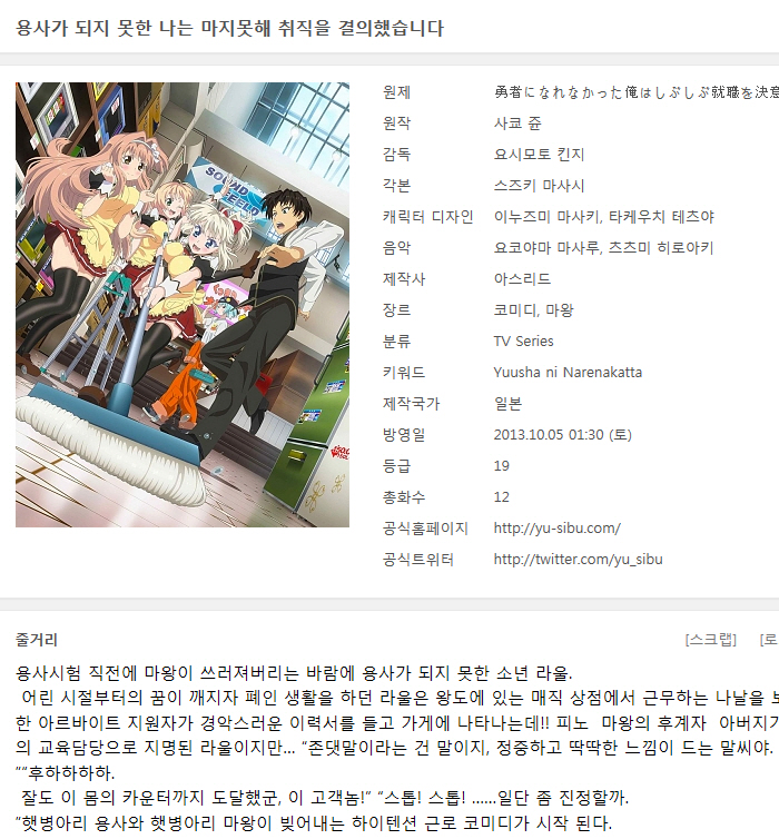 애니메이션 용사가 되지 못한 HOT 용사가 되지 못한 나는 마지못해 취직을 결심했습니다 1-13화 완결 날자2015 2026-01-01 5,232 16.7G 다운로드 6개 파일 Yuushibu - 01 [BDRip 1920x1080 x264 FLAC].mkv 16.7G 다운 Yuushibu - 01 [BDRip 1920x1080 x264 FLAC].smi 다운 Yuushibu - 02 [BDRip 1920x1080 x264 FLAC].mkv 다운 Yuushibu - 02 [BDRip 1920x1080 x264 FLAC].smi 다운 Yuushibu - 03 [BDRip 1920x1080 x264 FLAC].mkv 다운 Yuushibu - 03 [BDRip 1920 다운 추천 715 북마크 공유 목록