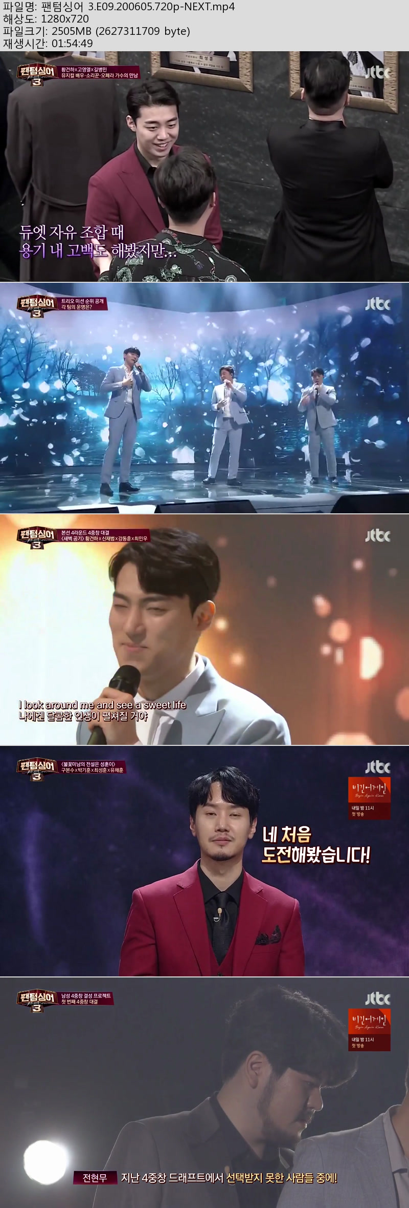 방송/동영상 팬텀싱어 3 E09 팬텀싱어 3.E09.200605.720p-NEXT 최고급소 2026-01-01 3,671 2.4G 팬텀싱어 3.E09.200605.720p-NEXT 다운로드 1개 파일 팬텀싱어 3.E09.200605.720p-NEXT.mp4 2.4G 다운 추천 562 북마크 공유 목록