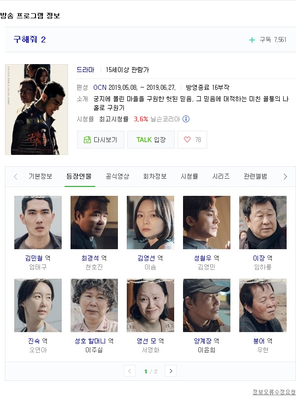 드라마 구해줘2 01화 16화 구해줘2 [ 01화 - 16화 완결 ] 엄태구 천호진 이솜 chs03700 2026-01-01 4,852 38.6G 다운로드 6개 파일 구해줘2.E01.190508.1080p-NEXT.mp4 38.6G 다운 구해줘2.E02.190509.1080p-NEXT.mp4 다운 구해줘2.E03.190515.1080p-NEXT.mp4 다운 구해줘2.E04.190516.1080p-NEXT.mp4 다운 구해줘2.E05.190522.1080p-NEXT.mp4 다운 구해줘2.E06.190523.1080p-NEXT.mp4 다운 추천 558 북마크 공유 목록