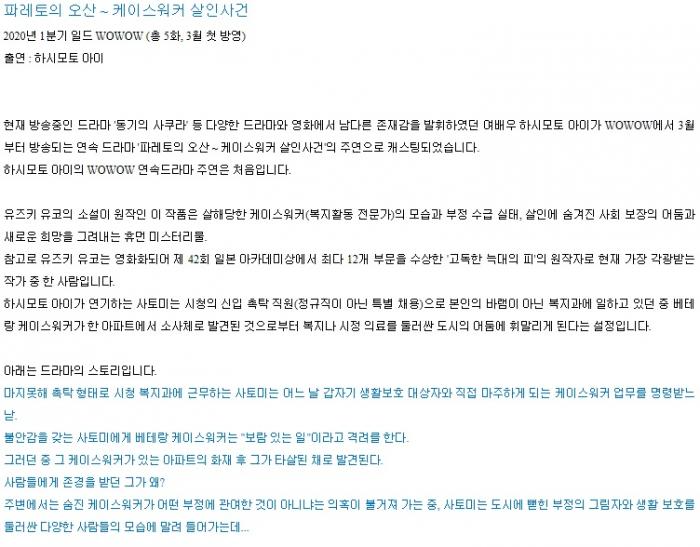 드라마 파레토의 오산 케이스 파레토의 오산 - 케이스 워커 살인사건 2화 [1080p] 한글자막 이타치우치하 2026-01-01 3,657 1.5G 다운로드 2개 파일 파레토의 오산 - 케이스 워커 살인사건 2화 [1080p].mkv 1.5G 다운 파레토의 오산 - 케이스 워커 살인사건 2화 [1080p].smi 다운 TAGS 파레토의 오산 케이스 워커 살인사건 2화 1080p 한글자막 추천 674 북마크 공유 목록