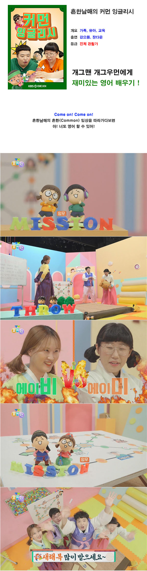 교육 흔한남매의 쉬운 영어 HOT 흔한남매의 쉬운 영어 [ 커먼 잉글리시 19화 미션 윷놀이 ] cplay6 2026-01-01 5,065 597.1M 다운로드 1개 파일 19_TV유치원_커먼 잉글리시_Game of Sticks 미션 윷놀이.mp4 597.1M 다운 추천 604 북마크 공유 목록