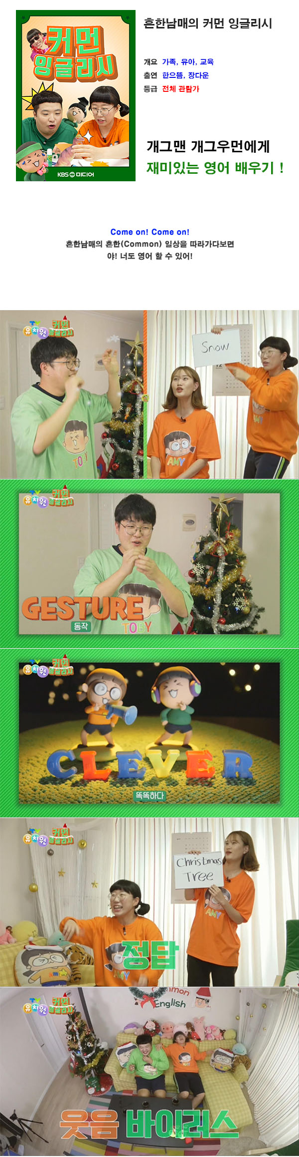 교육 흔한남매의 쉬운 영어 HOT 흔한남매의 쉬운 영어 [ 커먼 잉글리시 16화 크리스마스 특집 2 ] cplay6 2026-01-01 5,314 639.7M 다운로드 1개 파일 16_TV유치원_커먼 잉글리시_Remember Forget_X-마스 특집.mp4 639.7M 다운 추천 502 북마크 공유 목록
