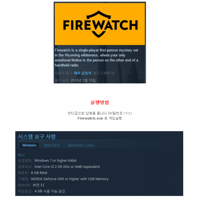 게임 녹색산림 화재감시원 Firewatch 녹색산림 화재감시원 - Firewatch (파이어와치) 바나나퀵 2026-01-01 4,077 1.3G 다운로드 1개 파일 Firewatch.7z 1.3G 다운 추천 599 북마크 공유 목록