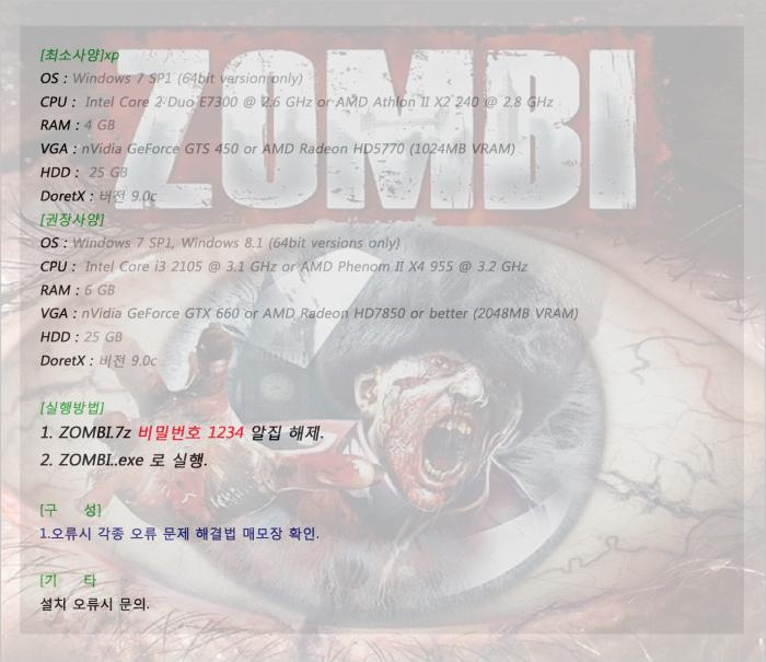 게임 2015 ZOMBI 영문 2015 ZOMBI[영문 무설치] loaderkill 2026-01-01 3,709 18.4G 비밀번호1234 다운로드 1개 파일 ZOMBI.7z 18.4G 다운 추천 740 북마크 공유 목록