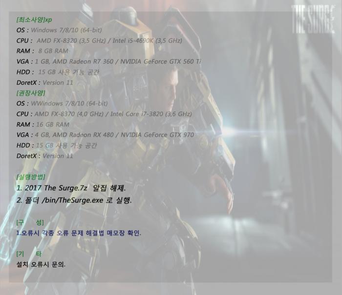 게임 최신 2017 The (최신)2017 The Surge[영문 무설치] loaderkill 2026-01-01 4,158 10.1G 일일이 64bi 환경에서 확인 및 마지막 판까지 플레이한 후에 업로드합니다.. 폴더명에 한글이 들어가면 응용프로그램 오류 납니다 [영문 무설치] 한글을 지우시고 플레이하시면 정상 플레이할 수 있습니다. 다운로드 6개 파일 2017 The Surge.zip 10.1G 다운 search_naver_com_20170516_193638.jpg 다운 각종 오류 문제 해결법.txt 다운 캡처_2017_05_16_19_23_27_594.jpg 다운 캡처_2017_05_16_19_24_15_550.jpg 다운 캡처_2017_05_16_19_24_23_954.jpg 다운 추천 770 북마크 공유 목록