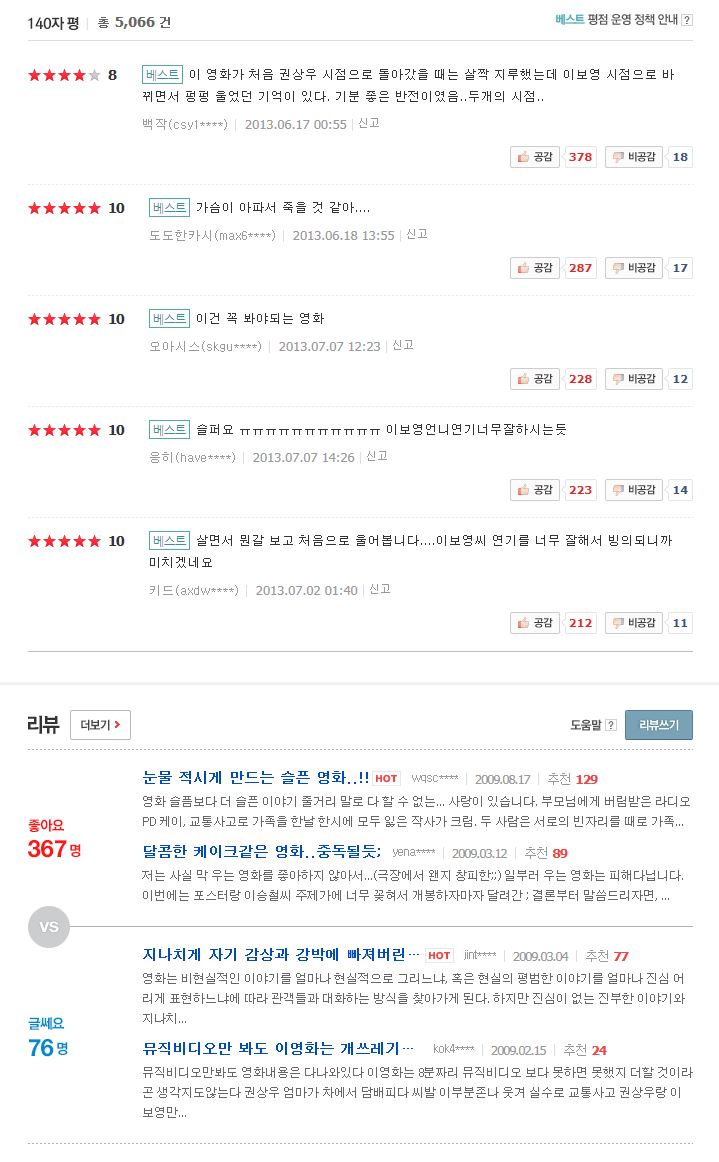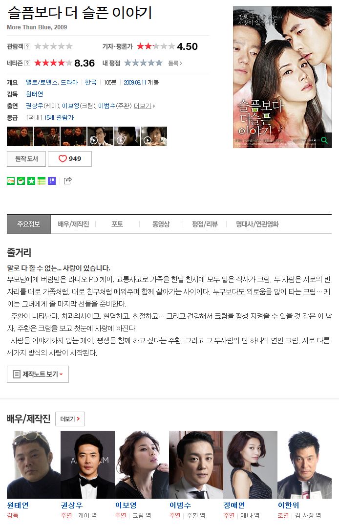 영화 평점 8 36 (평점 8.36) 가슴저린 이야기 권상우 이보영.[슬픔보다 더 슬픈 이야기] nowcontents 2026-01-01 4,164 4.4G 다운로드 1개 파일 슬픔보다 더 슬픈이야기.2009.권상우, 이보영, 이범수720p.DVDRip.MKV 4.4G 다운 추천 520 북마크 공유 목록