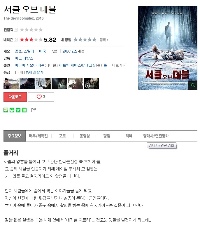 영화 서클 오브 데블 HOT ][서클 오브 데블] 저주 받은 숲 2016 자체한글 국산매니아 2026-01-01 5,141 2.0G 다운로드 4개 파일 서클 오브 데블.2018.mp4 2.0G 다운 s_c68fa1a060a85adc0825f48c549b1b32.jpg 다운 s_dc9e47ba07b5e92f851fdeb7ab167f0c.jpg 다운 s_6b30c768a33b4ebe2b17b9b9bd98a3c4.jpg 다운 추천 670 북마크 공유 목록