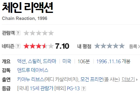 시카고 대학 실험실. 과학자와 기술자들이 세계를 뒤흔들어 놓을 과학적 성공을 이룩해낸다. 수년간 땀을 쏟으며 끈질기게 연구에 몰두한 결과, 이들은 물을 원료로 사용하여 에너지 고갈을 염려할 필요가 없을만큼 무한정으로 생산해낼 수 있는 에너지이자 공해율 0%인 무색 무취의 강력한 에너지를 생산해낸다. 이들의 실험이 성공하던 날, 대학생 기술자 애디 카살리비치(Eddie Kasalivich: 키아누 리브스 분)와 릴리 싱클레어(Dr. Lily Sinclair: 레이첼 와이즈 분)는 암살 협박을 받게 된다.