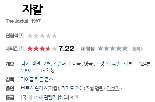 세상에는 국가처럼 강력한 힘을 가진 조직들이 있다. 그들은 전쟁을 일으킬 힘과 능력을 갖추고 있으며, 정치적, 금전적 또는 개인적 이해타산으로 전쟁을 야기시킨다. 그러나 그들의 목적은 오로지 하나, 대중을 위한다는 기치아래 누구든지 자신들의 적이라고 간주되는 대상에 피를 부르고, 공포감을 심어주는 것이다. 쟈칼(The Jackal: 브루스 윌리스 분)이라 불리는 사나이가 이러한 국제단체들에 의해 미국정부의 요인을 암살하기 위해 고용되었다. 그의 몸값은 7,000만불. 끊임없이 이동하고 변신하는 그의 거처와 정체는 물론, 그에 관련된 모든 것이 비밀 속에 싸여있었다. 단지 그의 이름이 자칼이라는 것뿐.