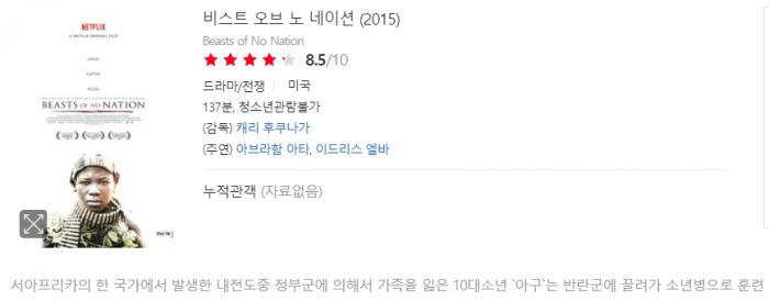영화 전쟁의 광기속의 소년 전쟁의 광기속의 소년 살인병기로 다시 태어나다 1080p 자막유 에센티아 2026-01-01 3,878 3.3G 다운로드 1개 파일 B.Nation 2015 1080p HDRip x264 AC3.mp4 3.3G 다운 추천 602 북마크 공유 목록
