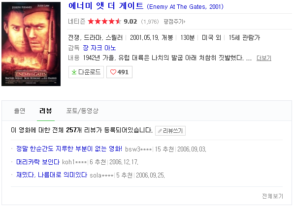 영화 오늘의 명작 에너미 HOT [오늘의 명작][에너미 엣더 게이트]FHD 세계대전 최강의 스나이퍼! icetea 2026-01-01 5,108 4.3G 다운로드 2개 파일 EneMy.At.The.GaTEs.2001.BluRay.720p.x264.mkv 4.3G 다운 EneMy.At.The.GaTEs.2001.BluRay.720p.x264.smi 다운 TAGS 오늘의 명작 에너미 엣더 게이트 FHD 세계대전 최강의 스나이퍼 추천 739 북마크 공유 목록