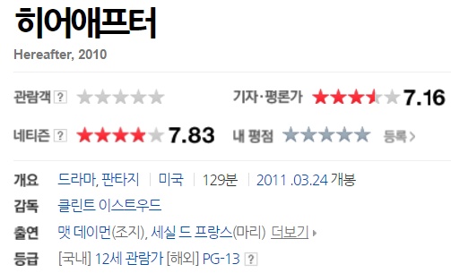 미국에 살고 있는 ‘조지(맷 데이먼)’는 평범한 듯 보이지만 사후세계와 소통할 수 있는 특별한 능력을 지니고 있다. 하지만 스스로가 원하지 않은 능력 때문에 사랑하던 여인마저 떠나 보내고 남모를 고통을 겪는다. 지구 반대편 프랑스에서 갑작스런 쓰나미에 죽음의 문턱까지 가는 경험을 한 ‘마리(세실 드 프랑스)’는 그 후 사후세계를 파헤치며 보이는 사실만을 믿던 기자로서의 삶에 커다란 변화를 맞이한다. 한편, 런던의 소년 ‘마커스(조지 맥라렌/프랭키 맥라렌)’는 사고로 자신의 반쪽과 같은 쌍둥이 형을 잃고 삶 저편 세계에 대한 해답을 간절히 찾아 헤맨다.